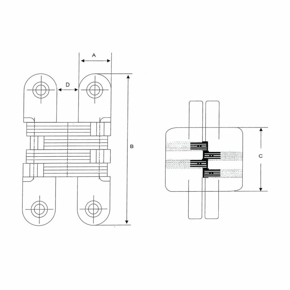 De blinde scharnieren zijn gemaaktvan RVS en daardoor ook buiten toepasbaar. De blinde scharnieren zijn onzichtbaar als de deur gesloten is. Na de montage is het scharnier volledig geïntegreerd in kozijn en deur.