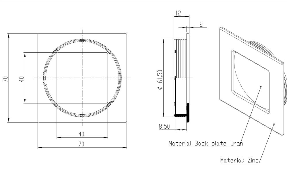 Vierkante infreesgreep 70x70X10mm RVS look